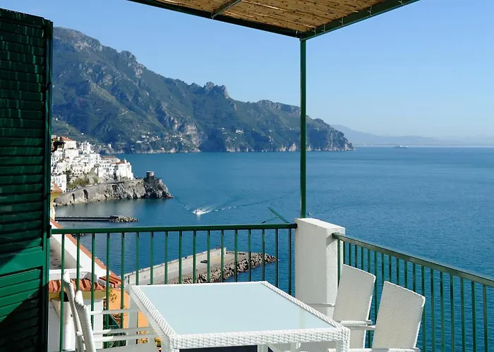Staying at the spacious Amalfi Blue Flowers B apartment, guests can relax on a terrace a 10-minute drive from Emerald Grotto Cave.